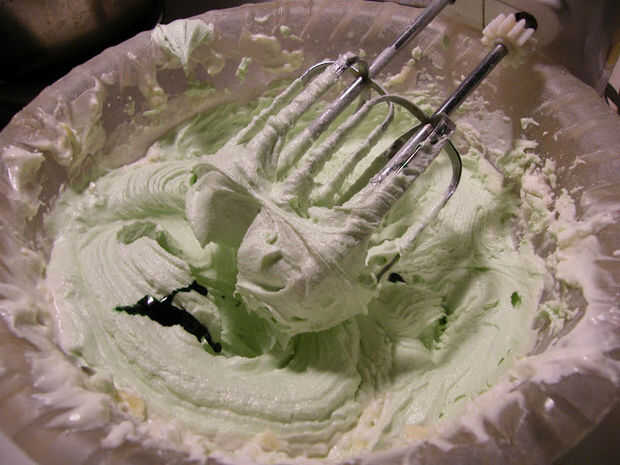 Uso de su batidora, batir juntos el acortamiento y ablandar la mantequilla hasta que esté suave y combinar luego añadir en icing sugar bits por bits.