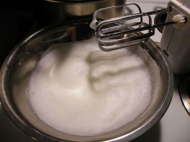 Uso de su batidora, batir claras de huevo hasta forma rígida, a un lado.