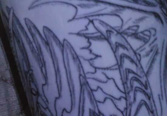 sombreado es una de las partes más difíciles de describir. en este tipo de arte, sombreado consiste en muchas líneas cortas paralelo uno al otro, muy juntos, de diferentes profundidades y presiones. (como este: IIIIIIIIIIIIIIIIIIIIII) voy a intentar conseguir una foto de esto, pero las líneas son tan pequeñas, yhe cámara no cogerlo muy a menudo.