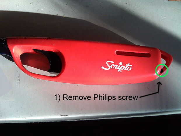 Mis instrucciones de desmontaje son breves y en cierto modo redundante a la ruptura de Scripto encendedor paso a paso más detallada publicada por un escritor anterior en: