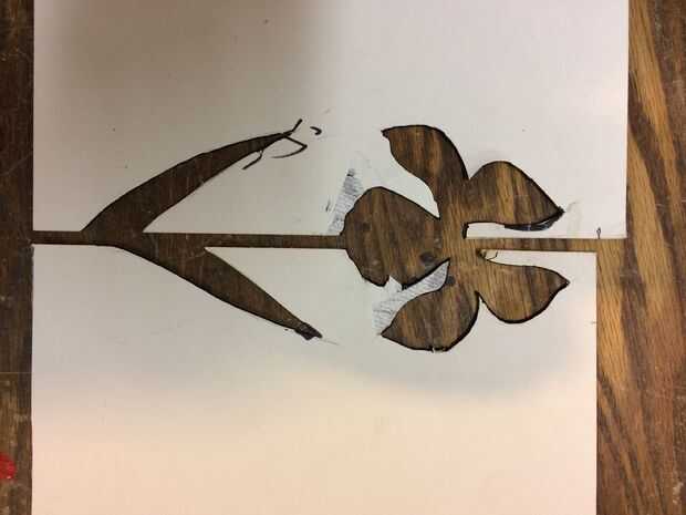Primero elige una flor (s) a utilizar. Miré a siluetas de flores hasta que encontré que algunos me ha gustado mucho. Puede que desee evitar el uso de uno muchos pétalos debido a las volutas es necesario. Copiar la imagen y recortarlo. Luego lo trace en alguna cartulina pesada (como la parte trasera de una vieja pastilla) para que la mitad de ella está en un borde y la otra mitad en el otro borde. Recorto.