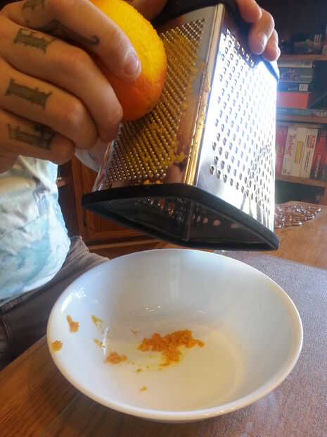 Paso 1.A. - rallar la naranja para obtener tanta cáscara como sea posible. Esto ayudará con color y aroma del producto final.