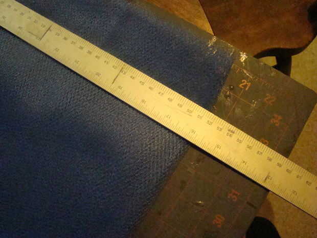 Aquí es el tejido de red.  Se compraron por la yarda (en los Estados Unidos) y 72 pulgadas (2 yardas) de ancho.  He doblado la red y puso en la almohadilla de corte para que el borde de corte es incluso con el fin de las marcas en la alfombra.  Puse la regla de metal en las red, 2 pulgadas (5 cm) del extremo,