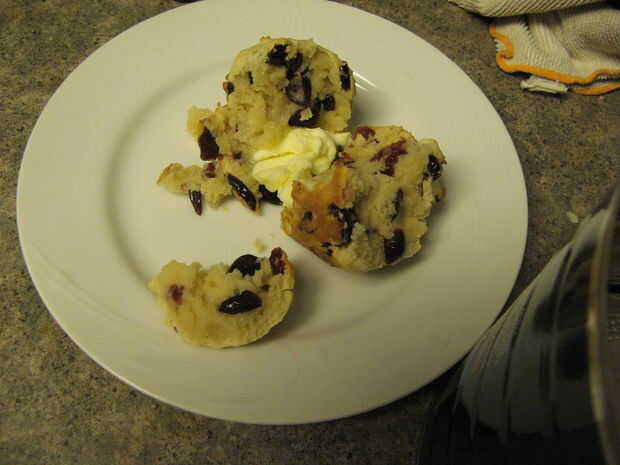 mi hija y me gusta scones para el desayuno. Desafortunadamente, la tradicional forma triangular tiende a desmoronarse en una mochila o maletín. Entonces, nos miró a su alrededor de una forma más "viaje de amistad" y encontramos nuestro pan de torta de la taza. Por lo tanto, Scuffins - el panecillo en forma de bollos!