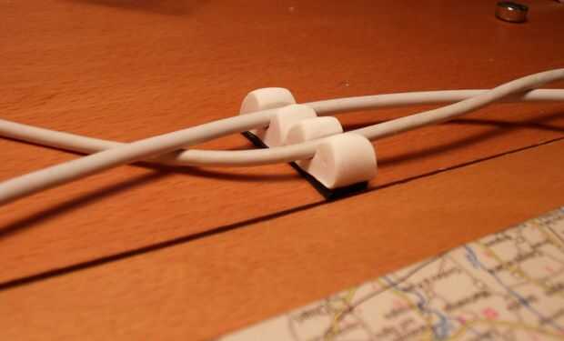 Anteriormente había intentado organizar cables con blu tack, pero que llegó a ser desordenada y un dolor para raspar.