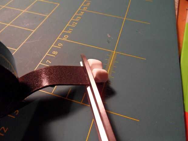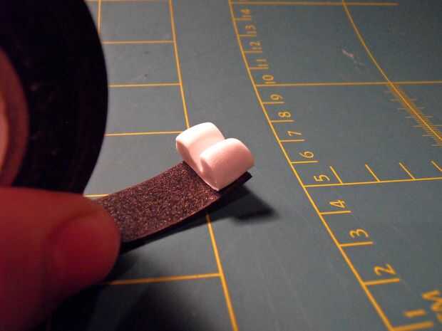 Agregar la cinta simplemente pegar el titular en una tira de cinta de doble cara y cortar en el lado (Asegúrese de que la superficie de la Sculpey es limpiar primera). Luego tire la hoja para colocar en cualquier lugar, a cualquier cosa.