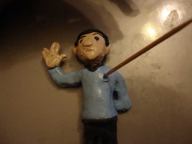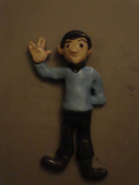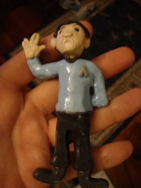 Para suavizar cualquier marcas de los dedos y hacerle buscar todo Spocky, tomó aceite de bebé y un cepillo pequeño y había movido alrededor de Spock. Aceite de bebé suaviza Sculpey. (Ver mi instructable en eso: aquí) Cuando se utiliza aceite de bebé como una "pintura" el sculpey se vuelve muy líquida, esto le permite deshacerse de sus marcas de los dedos y conseguir un look muy suave.