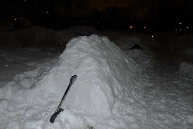 La clave para que el montículo es que una vez que crees que es suficientemente grande, añadir al menos un pie de nieve buffer alrededor de él para permitir errores y derrumbes. Es absolutamente posible añadir nieve después de que usted está en pleno proceso, pero hay algunas razones por qué no hacerlo