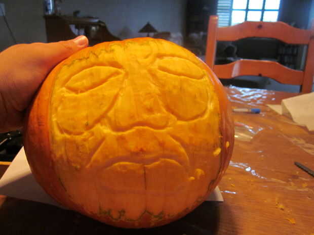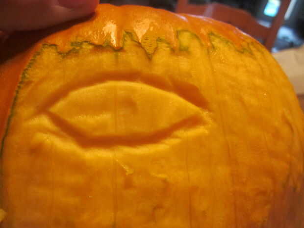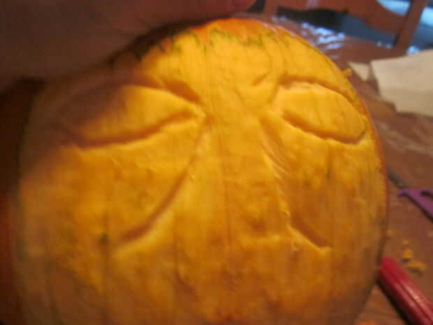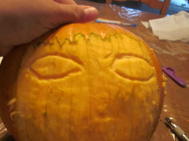My pumpkin for Halloween this year. No consigo una oportunidad para documentarlo que estaba haciendo, pero todavía quería mostrar el resultado!El diseño es original y fue hecho por mano de dibujo en la calabaza con sharpy y luego borrar con vaporizad