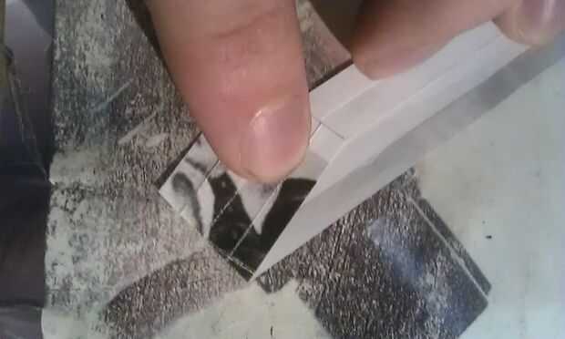 Debe haber 3 pliegues que se intersecan en el 1 punto; la línea media, su pliegue horisontal a 2.5 cm y su pliegue oblicuo que usted acaba de hacer ahora.