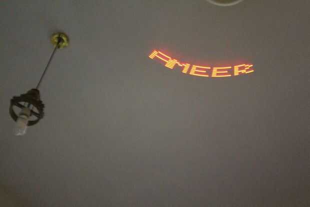 Es una simple tira de LED que parpadea a un ritmo muy rápido de manera que hagan una secuencia que cuando monta en algo gira mostrará la secuencia (de su elección mediante programación) también conocido como el fenómeno "Persistencia de visión" (PoV) y creeme no creo que funcionaría hasta que realmente lo hice mi auto.