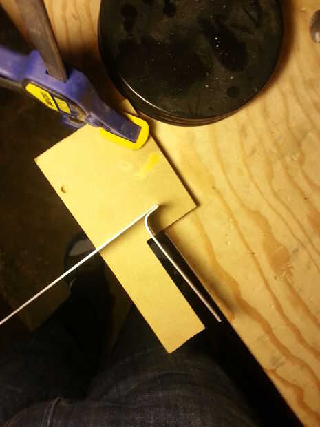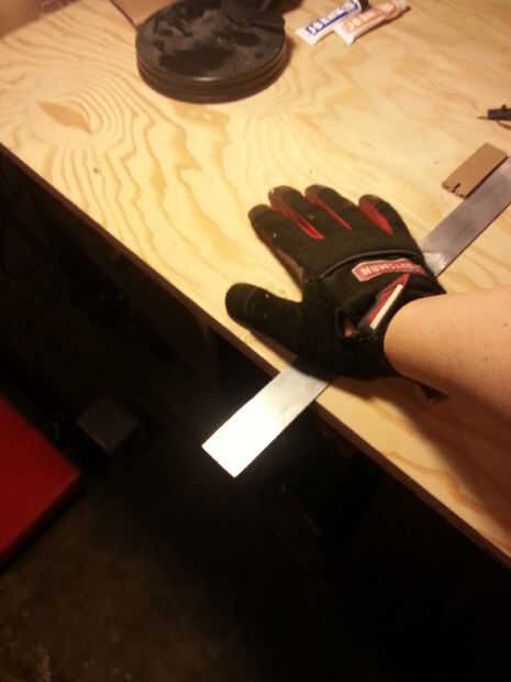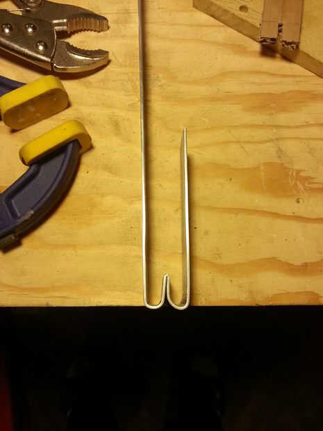 Ahora empezaremos usando un haga descanso de cambio de su duro borde recto para formar el resto de las esquinas. Mida y marque la curva siguiente. Coloque el borde de su regla sobre las marcas y sujete en su lugar con vice apretones. Sosteniendo como cerca el borde de la ruptura posible doblar el metal a 90 º. Repetir un total de 5 - 6 veces. Hice mis dos extremos se reúnen en una esquina por lo que sólo había 5 curvas después de la de centro. Este método es más fácil pero si tienes un material más flexible que los extremos se reúnen en una escalera hará recortes más simétricos. Para unir los dos extremos me simplemente lijar las superficies de acoplamiento y había aplicado pegamento gorila. No es la mejor solución pero sostenido de al menos un lote.