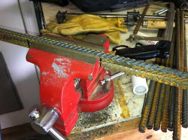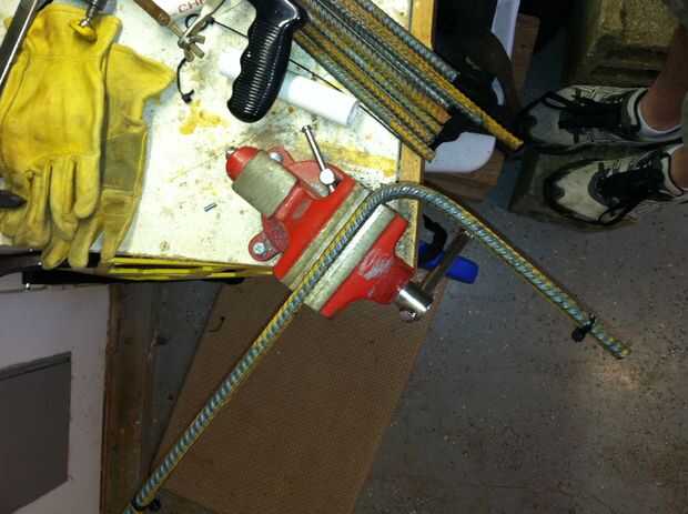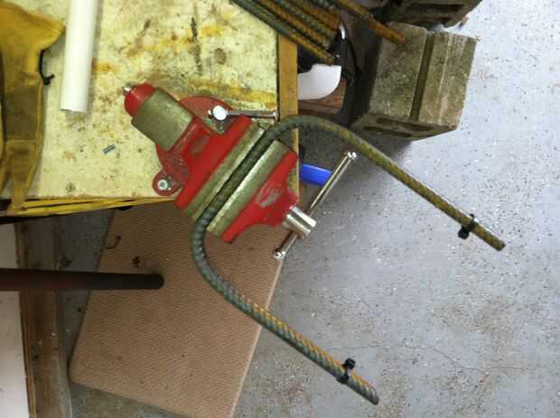 Si las dos curvas no se alinean correctamente en el plano Z, puede girar el montaje vertical en el tornillo de banco (para que las piernas están por encima y por debajo de unos a otros), coge otra barra y doblar las dos piernas en direcciones opuestas hasta que se corrijan.