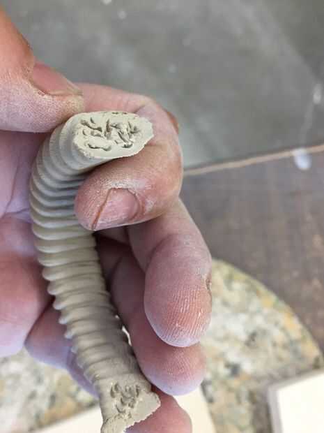 La forma de su mango para aproximar el aspecto final. Puntuación y añadir unas gotas de agua a ambos extremos del mango.