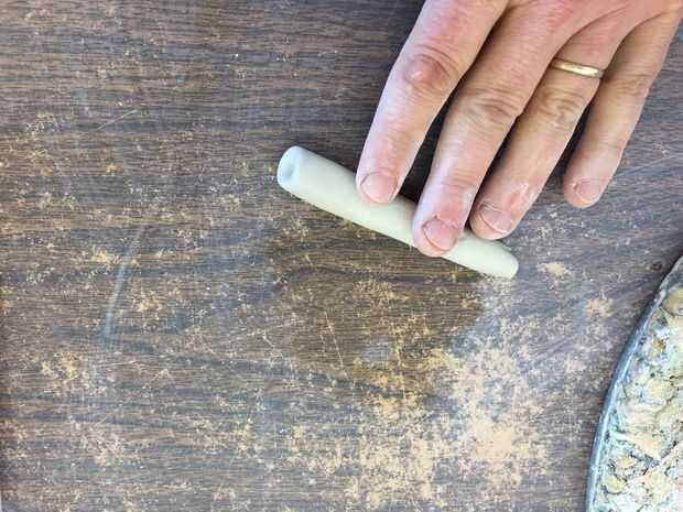La arcilla del rodillo en una mesa para ser 4"- 5", y estrechándose ligeramente en un extremo. Se trata de un poco más largo que el mango final. Si tienes problemas para balanceo uniformemente, no te preocupes, acaba de empezar otra vez.