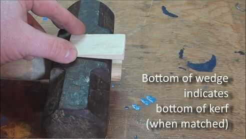 • Marca Dónde está la parte inferior de la ranura de corte con un lápiz para que puede insertar correctamente la cuña en la cabeza de la herramienta