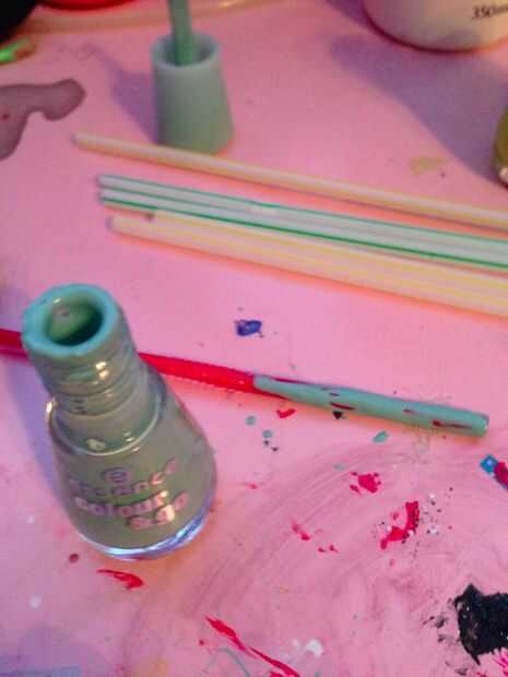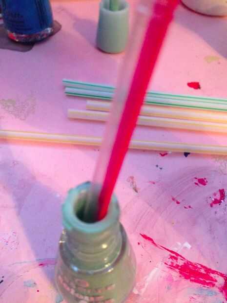 Paso 3: Tome su color 1 de salpicaduras. Poner la paja en su pulimento, asegúrese de que usted no ponga en todo el camino porque tienes demasiado y el efecto de la salpicadura no funcionará. Golpe en su paja muy rápido y se salpicará.