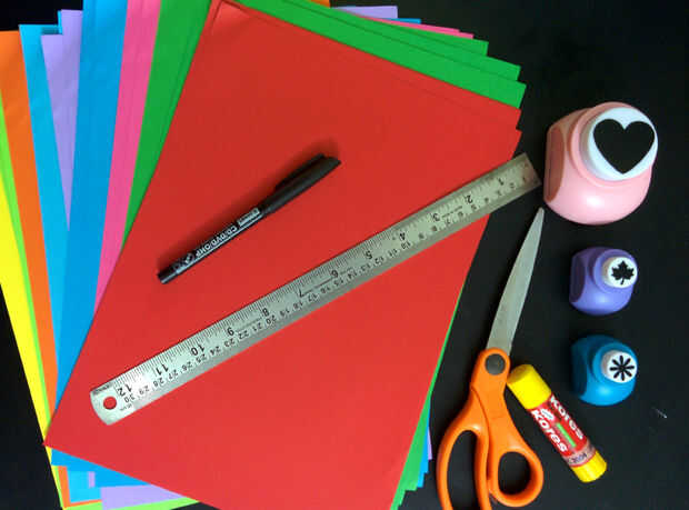 Para todos los pasos, puedes ver el video https://youtu.be/pVerY3o44wsMás Videos aquí:http://www.youtube.com/User/fixitsamo/videosPaso 1: fuentes de8 1/2 x 11 papel stock de la tarjetafranjas de papel de Color de 2 x 4LápizTijerasPegamentoRullerPaso
