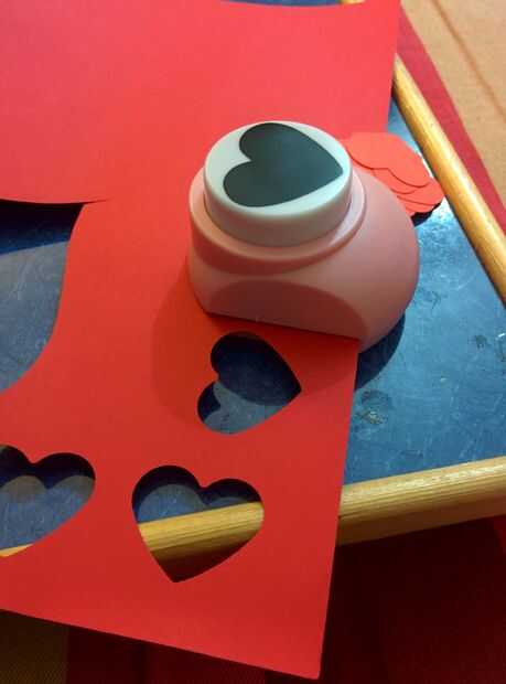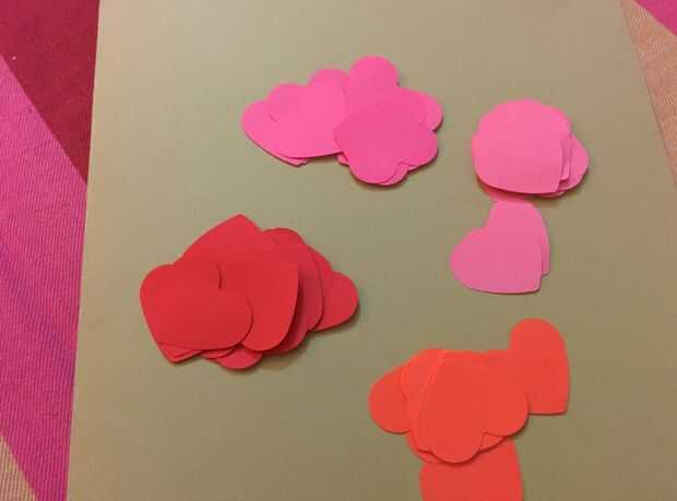 Usando el corazón en forma de craft punch, hacer varios corazones de papel rosa rojizo, naranja, rosado y ligero (que puede usar su propia opción de colores)