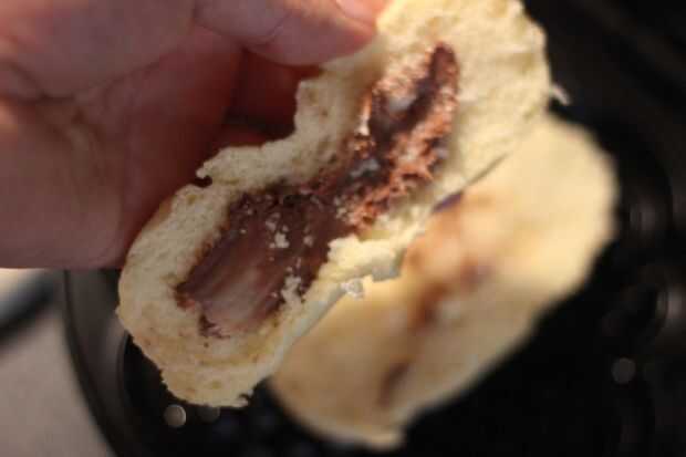 Corte el milkbread y rellena con crema de turrón de tuerca.
