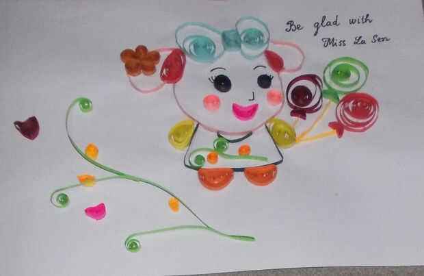 Miss La Sen es el personaje aquí story juego de mesa, juego para móviles, Hi La Sen-Hi Life bonita canción...Paso 1: Utilizar este patrón. Imprimirlo o dibujarlo en papel de tamaño A4.Paso 2: Utilice la aguja quilling y las tiras de quilling, pegamen