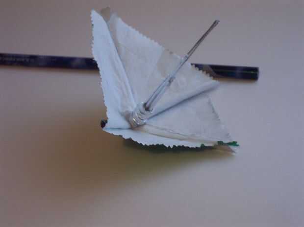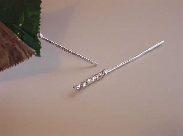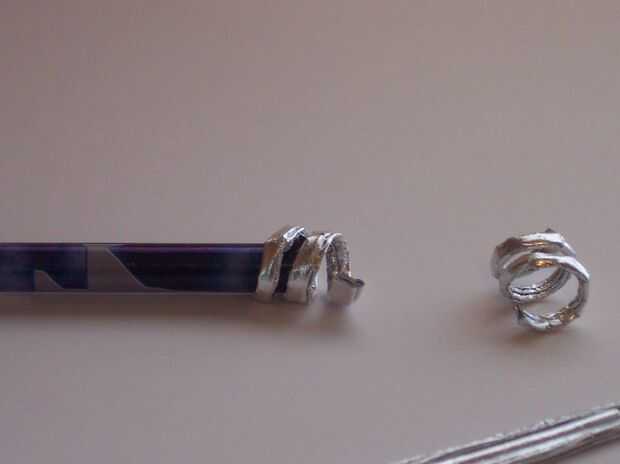 Tomar un palillo y enróllelo alrededor de uno otro en una espiral apretada hasta que te quedas sin palo. Salga de la espiral. Esta espiral en el extremo de la pieza de longitud completa de la manija de umbella del hilo de rosca. Empuje en aproximadamente la mitad de la longitud de la espiral. Tomar la mitad de la espiral que no está conectada a la palanca y doblar en un semicírculo para realizar la manija.