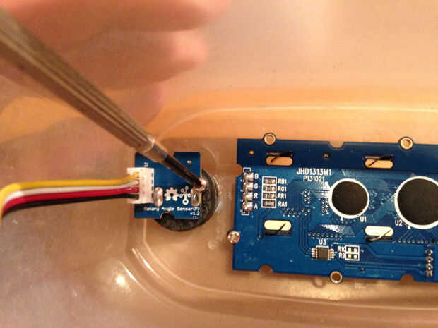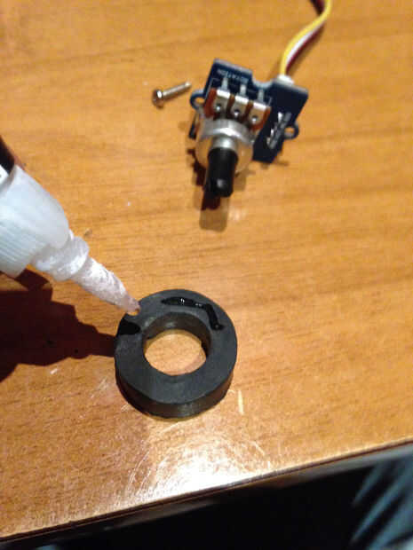 Pegue la arandela de goma dentro de la caja, luego tornillo sensor rotatorio a él.