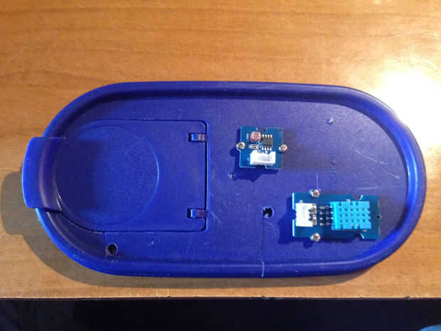 Tornillo de DHT y sensores de luz en la parte trasera de la caja.