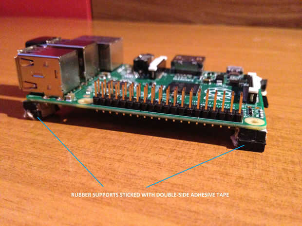 RaspberryPi & GrovePi + se colocan dentro de la caja en cuatro arandelas de goma pegada con cinta adhesiva de doble cara.