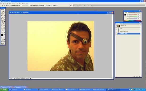 En esta imagen se puede ver que yo estoy más o menos cortando la imagen con el lazo. Hacer primero un corte áspero para que pueda caer en la imagen base y moverlo a ver si se trata de derecho. Si no es así, entonces usted puede siempre tomar otra foto, en lugar de perder tiempo cortando cuidadosamente alrededor y encontrarla se ve mal cuando se coloca.