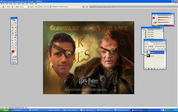 Significaba un poco de su chaqueta y algunos del fondo detrás de las letras del cartel de la clonación. Bastante fácil de hacer porque la imagen original era un poco indistinta en los puntos