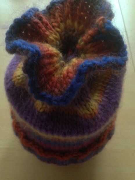 Se trata de un sombrero de caballero que diseñó mi hija. Diseño que es como una campana en el invierno con 2 colas de cerdo en los lados para la diversión. Tiene un cuello de bufanda-como que mantiene el cuello caliente. Espera es divertido y un buen