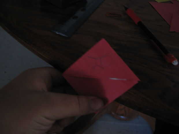 aquí es lo que se necesita: tijeras, cinta, pegamento o palillo del pegamento, regla y cualquier tipo o papel y marcadorPaso 1: Medir un cuadrado 5/5. Hacer 4 plazas 2 1/2" interior. Vuelta tan cuadrado es un rombo. Partida 1 2 en el lado por el medi