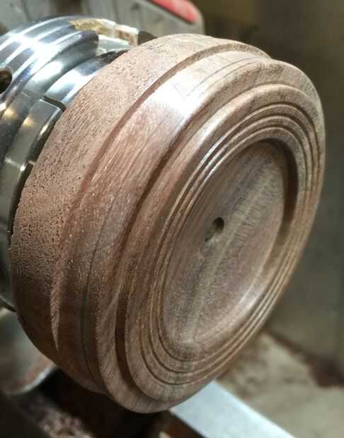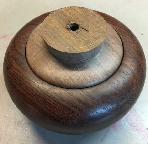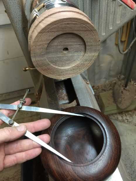 Una vez que estaba contento con el OD más grande de la tapa me fui a los más pequeños. Voy a usar el mismo mordazas ejerce el tornillo de accionamiento cuando termine la parte superior de la tapa. Medí el diámetro exterior de las mandíbulas cuando cierran y transfiere a la parte inferior de la tapa. La primera foto muestra cómo corté esa dimensión en la parte inferior de la tapa, serán capaces de ampliar las mordazas en esta hendidura y acabado de la tapa. A continuación comenzar formando el labio de la tapa. Utilizando las pinzas otra vez que transferir el diámetro interno de apertura en la parte inferior de la tapa. Esto permitirá que la tapa descanse dentro del cuerpo de la caja. La tercera imagen muestra la forma final de la parte inferior de la tapa. He añadido varios anillos decorativos para la diversión. Como se puede ver en el cuarto cuadro, la tapa encaja perfectamente en la parte inferior de la caja.