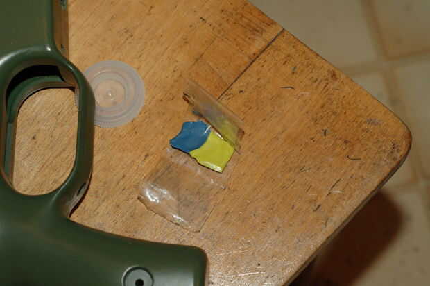 Para sellar, utilicé un poco más pequeña de la izquierda sobre Masilla epoxy que tenía para el modelado de miniaturas de juegos de azar.