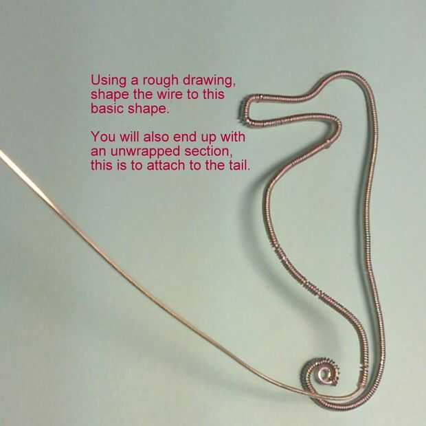 Sólo tomó un trozo de papel y dibujó un caballito de mar en él y en forma de alambre para adaptarse a la imagen. Usted fácilmente puede imprimir una imagen de internet. Busque uno que puede teñirse, como para niños.