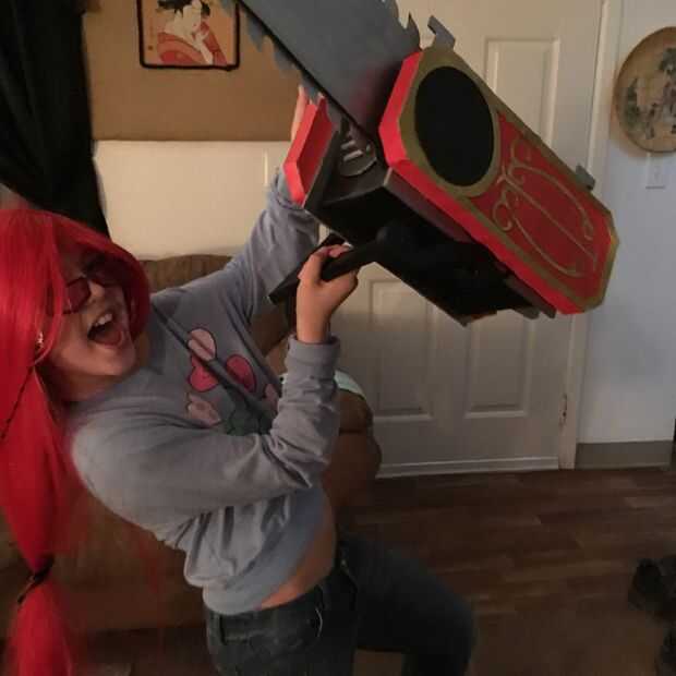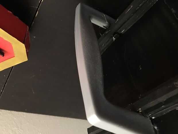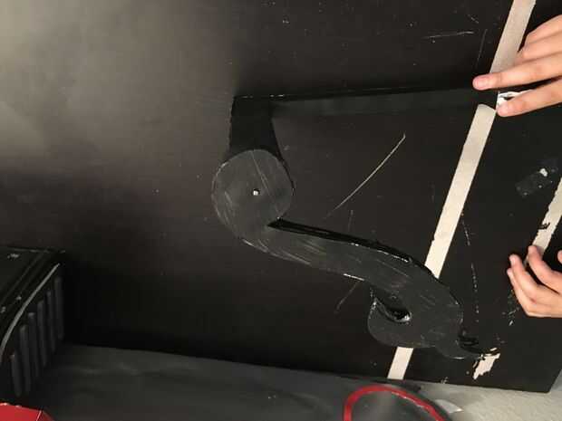 Para la manija trasera, iba a la moda una pieza que parecía exactamente mango en Grell, sin embargo estaba empezando a correr fuera del tiempo y encontrar un plástico gris de la manija que era capaz de conectar a la parte posterior de la caja con pegamento. También utilicé 1/4 tiras de tablero de la espuma para hacerlo un poco más estructuralmente estable y más fuerte. Después de dejar y empoderarse fuera seco durante la noche, era bastante sólido y mi hija fue capaz de manejar alrededor de como estaba a punto de sacar algunos demonios. (foto de arriba)