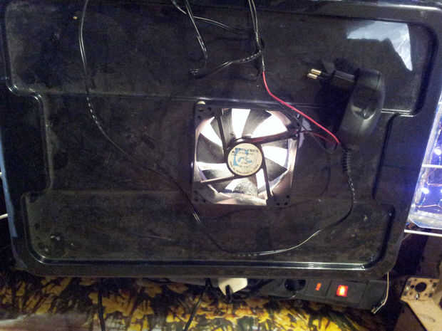 mejor reflexión de la luz y también para la protección de la caja (encontré que el plástico se derretirá si no ha cubierto que metan su carne), una bombilla incandescente de 75w, 3 barras de aluminio para colgar y un ventilador de 12v.