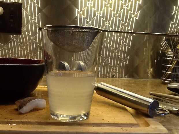Yo siempre Vierta a través de un tamiz para obtener cualquier pelo de coco fuera del agua.
