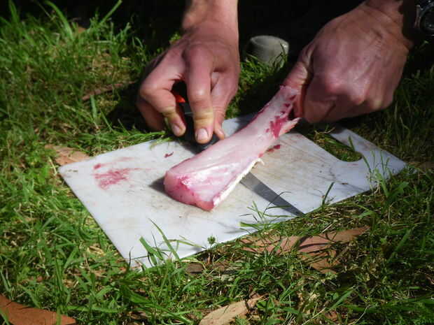 Utiliza la sección de cola para el secado ya que es menos grasa y mejor infiltración en tiras largas. Deslizando el cuchillo debajo de la piel los filetes.