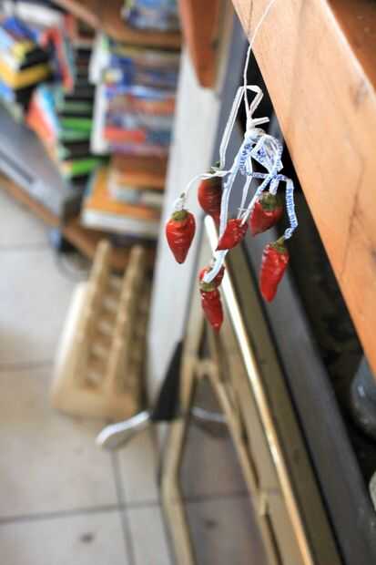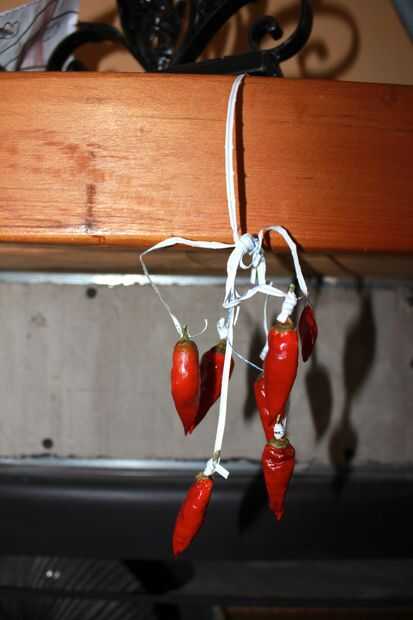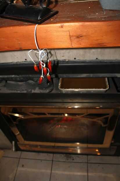 Hemos estado utilizando una estufa este otoño para acelerar el proceso de secado de madera, pero una vez más, no es necesario. En nuestra última casa, colgamos los pimientos en un pomo de armario sobre la estufa durante una semana.
