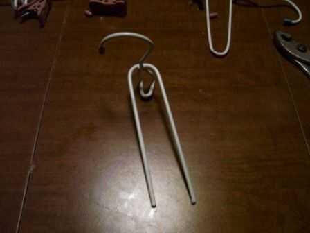 a continuación, empezar a doblar! Para este paso, doble los brazos principales juntos como se muestra para que apunten en la misma dirección, separadas entre sí aproximadamente media pulgada o menos. PRECAUCIÓN: sólo doblar una vez (o dos veces a lo más). Más dobla, más probable al debilitar o romper el metal. Peor caso: su copa de vino pobre toma una caída de miedo por el camino.