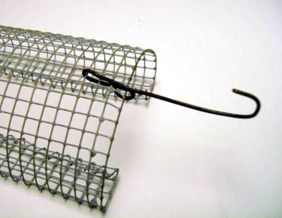 Forma un gancho de alambre square-ish, archivo del corte termina lisa. Montar el gancho en el centro de la licencia de C. cerca de uno y medio pulgadas de caña más allá del extremo de la tela de alambre.