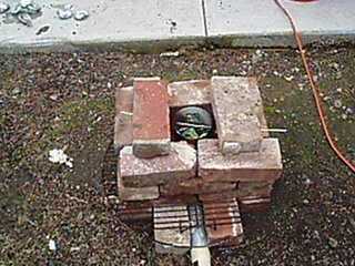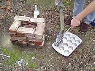 Tome los últimos dos ladrillos y colóquelos ** minuciosamente ** en la parte superior del horno para formar una chimenea. Debe colocarse para que el centro del horno forma un cuadrado enmarcando el crisol. (ver imagen)