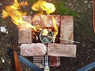 Encienda el carbón de leña y, con el crisol de los extremos de la barra extendida, colocar el crisol en el horno. ** CUIDADOSAMENTE ** gota en briquetas adicionales hasta por el nivel de la varilla del crisol. No en paquete, usted siempre puede caer en briquetas más más adelante.