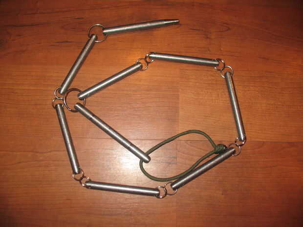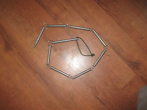 El látigo de cadena es un arma increíble.  Pueden doblarse lo suficientemente pequeño para llevar en un bolsillo, pero atacar con velocidad y gran potencia.  Era un arma utilizada en la antigua China como un arma de copia de seguridad si la espada se perdió.  Ver esto para una demostración.
