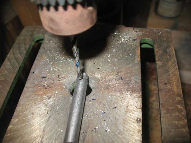 Ponga la 1/8" broca en el taladro y perforar un agujero no menor de 1/4" del final en ambos extremos de la varilla de 3 1/2".  Repetición en todos los 3 1/2" piezas.  Perfore un agujero en el 4" pieza y dos en 4 1/2" pieza.