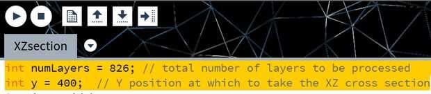 Para crear una sección transversal de los segmentos en el plano XZ, necesitará editar el esbozo XZsection.pde para indicar a cuantas rebanadas tiene y en qué valor Y desea tomar la sección transversal.