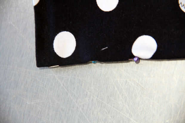 Buscar el centro de las bragas de doblar por la mitad y colocar un alfiler verticalmente en el borde doblado. Esto es sólo para marcar el centro; no pin los lados juntos.