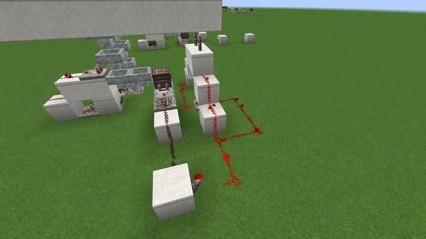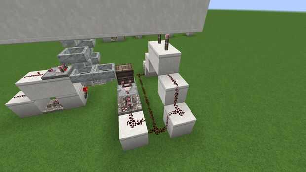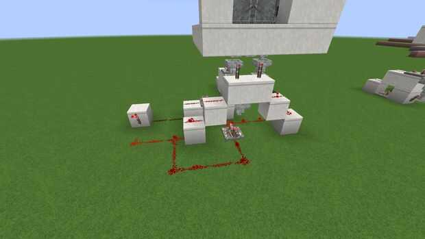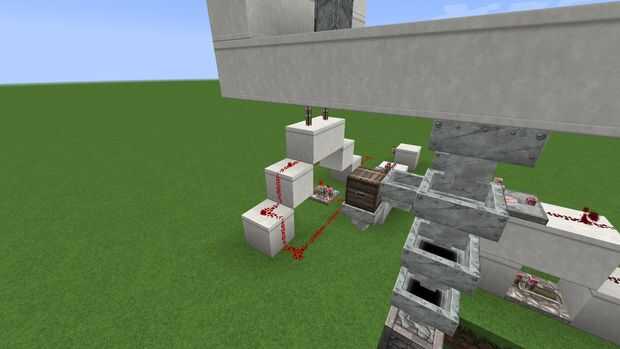 Colocar un fuelle de antorcha cada puerta y vincularlos tp un inversor (un bloque + una antorcha) para bloquear las puertas en la posición cerrada. Poner un comparador cerca del pecho, su salida a la dirección opuesta, entonces cerca un repetidor que envía una señal de 15 cuadras.